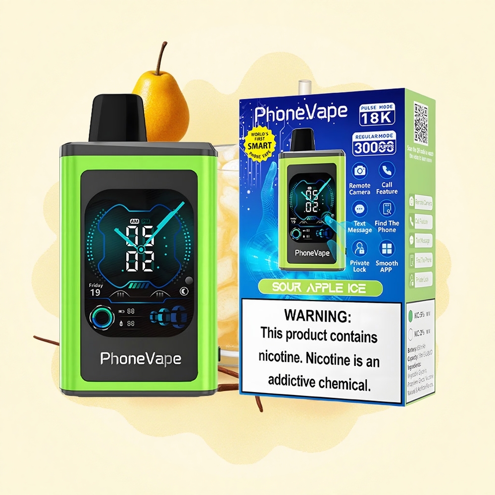 JNR PhoneVape 30000 תפוח חמוץ קרח עם סוללה נטענת ושליטה באפליקציה