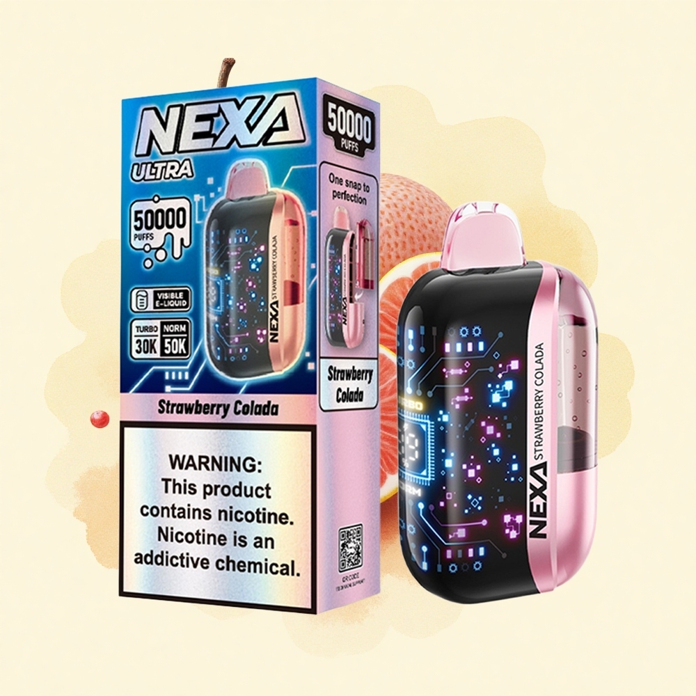 NEXA Ultra 50000 Puffs עוגת תות קוקוס עם סוללה 800mah ומסך תלת מימדי