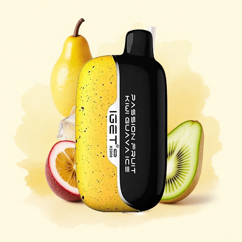 IGET Moon K5000 Puffs פסיפלורה קיווי גויאבה קרח עם סליל משי 1.35 אוהם וגודל 49.5×25.3×99.4 ממ