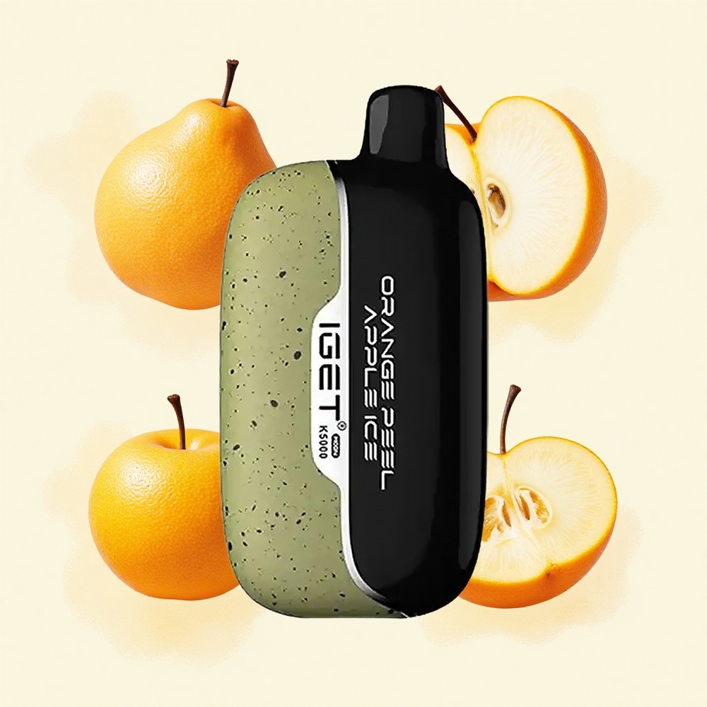 IGET Moon K5000 Puffs תפוח קליפת תפוז קרח עם משקל נקי 81.5 גרם וגודל 49.5×25.3×99.4 ממ